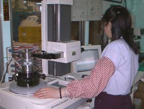 The picture to the left is a master cam and piston checking machine. The factory utilizes this machine to check the profile and taper of all prototype samples and a designated percentage of the production run against the piston specifications.