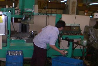 The machines shown here utilize the new "master cam" to cut the piston profile and taper exactly per the Original Equipment specifications. The machine on the above is making the first, or "rough cut". The machine on the below is making the second and finish cuts, the last of which is a special patterned groove designed for a specific oil retention which prevents piston scuffing and seizing under all engine conditions. Large production runs are profiled automatically on the CNC Piston Manufacturing Line (see next page).![]()